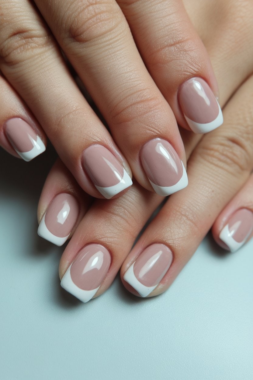 The classic white French manicure is a timeless choice for nails. This style pairs a nude base with crisp white tips, creating a clean and elegant look. It works well for any occasion.