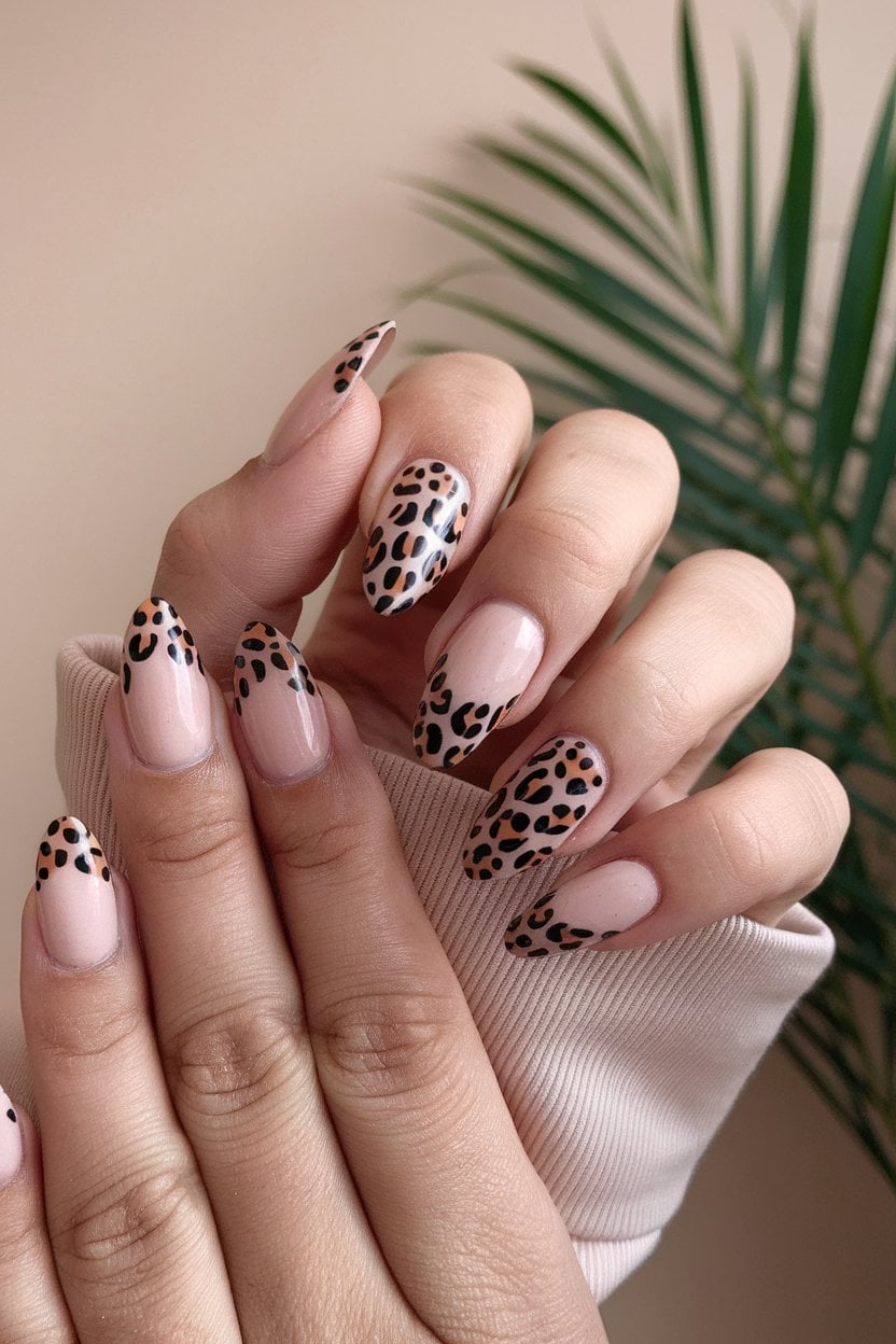 Leopard print accents add an edgy flair to your manicure. You can easily incorporate them into your favorite nail designs.