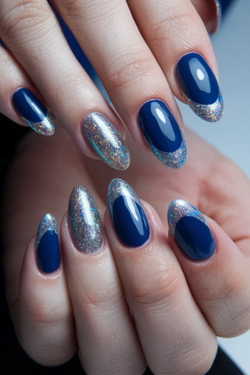 You can mix things up by using different glitter styles—maybe some fine shimmer or chunkier pieces for variety. This design pairs well with casual outfits or more formal ensembles.