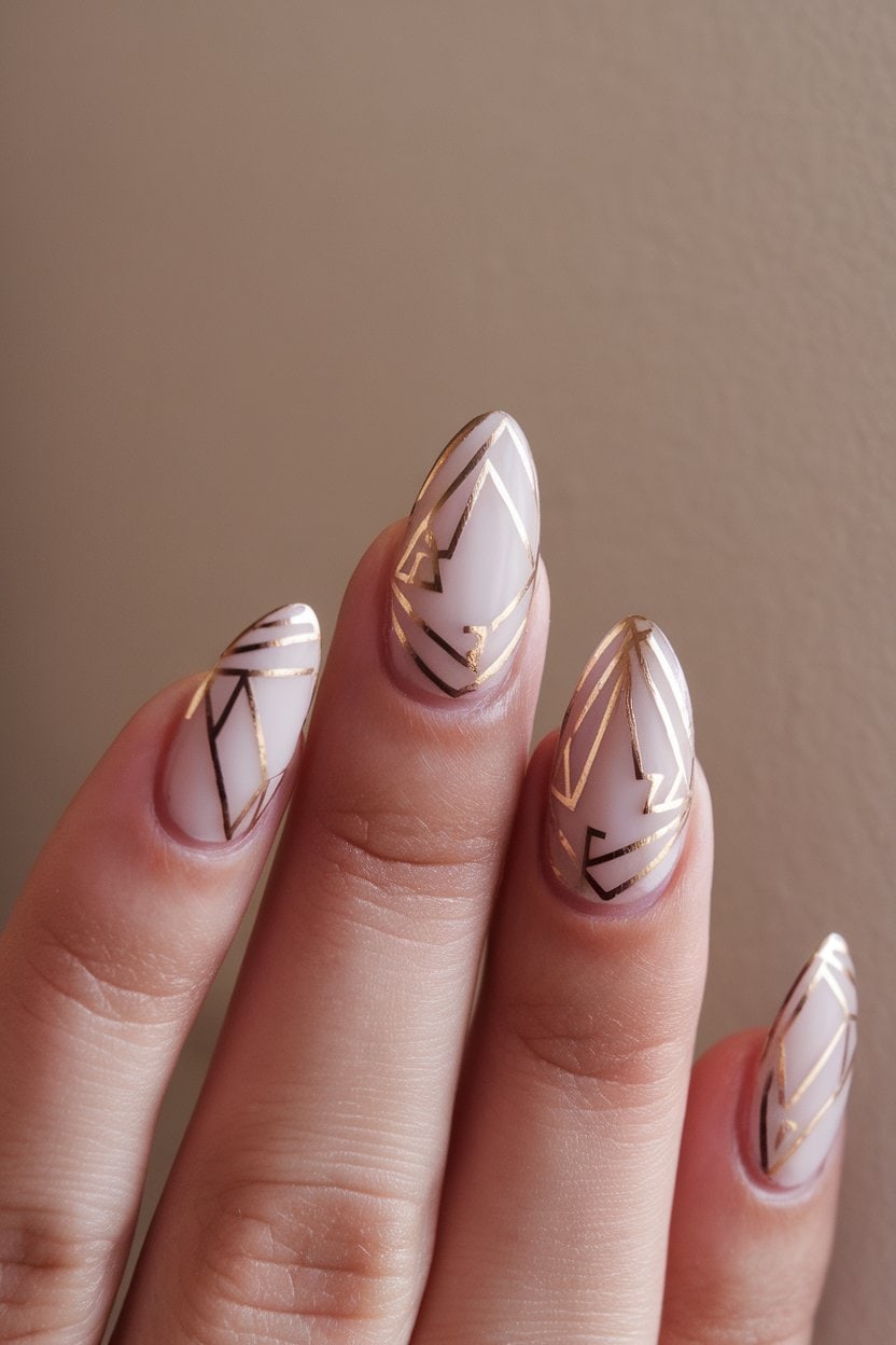 Geometric patterns add a modern twist to nail art, especially when combined with metallic or holographic details.