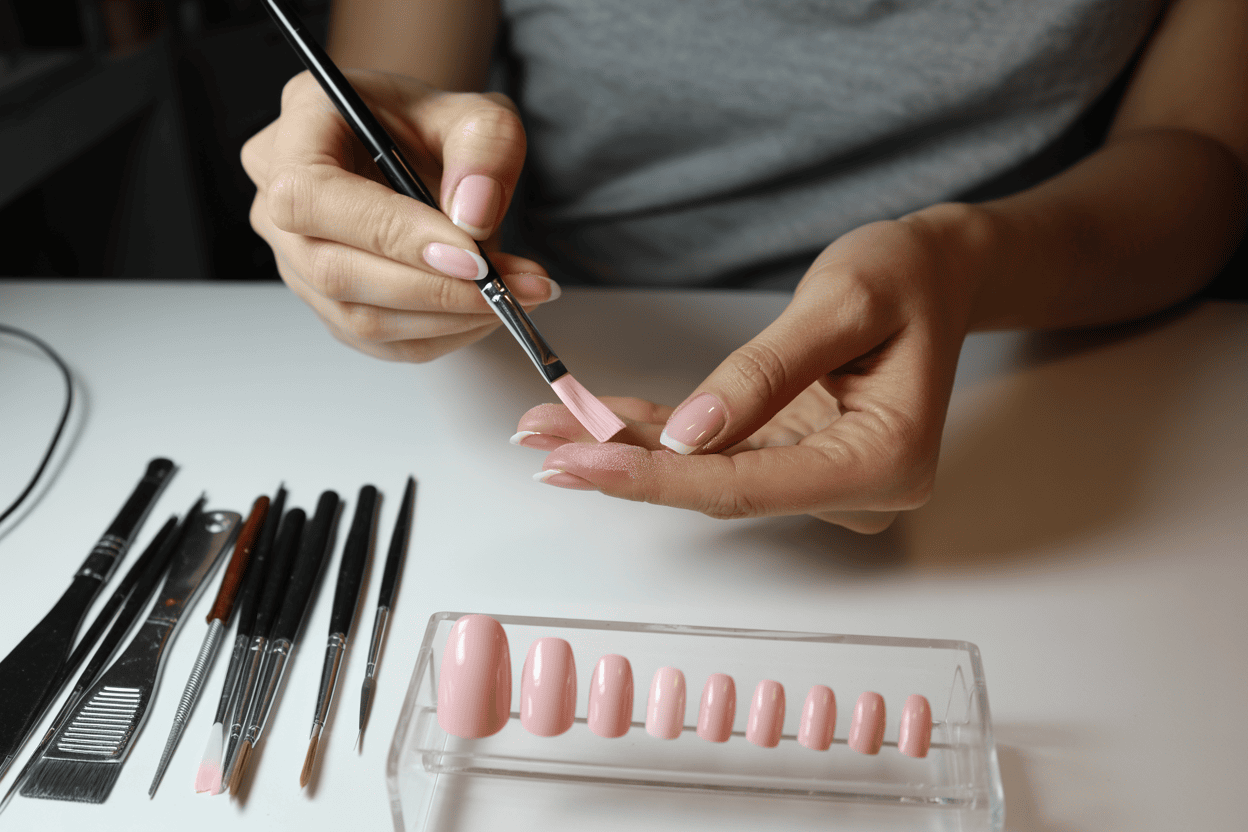 Water, chemicals, and rough handling can all weaken acrylic nails. Wearing rubber gloves for dishes or cleaning helps prevent lifting and brittleness.